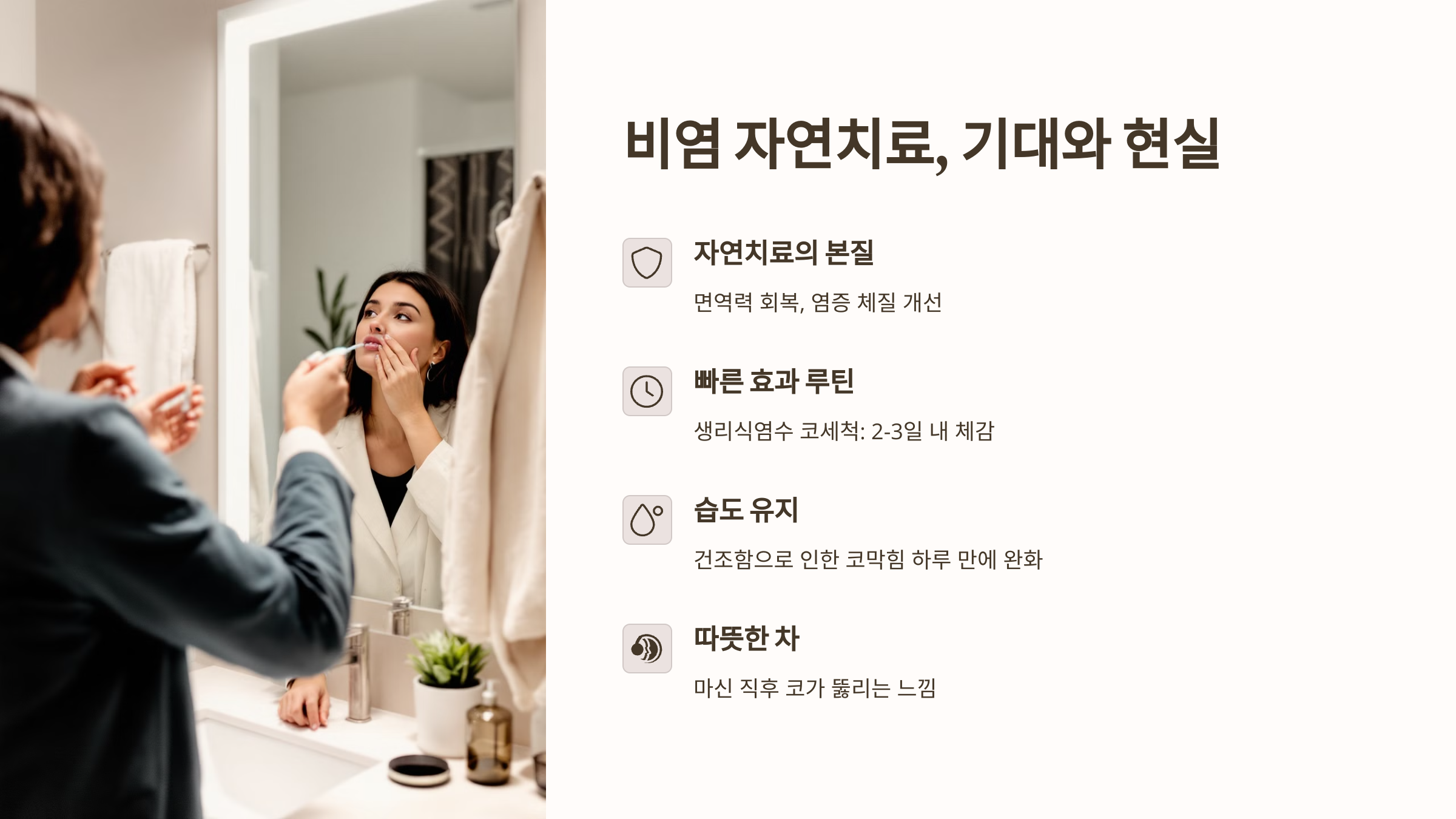 비염 자연요법, 당장 내일부터 효과 있을까요? 실천 루틴별로 실제 반응이 나타나는 시점과 꾸준함의 중요성을 알려드립니다!