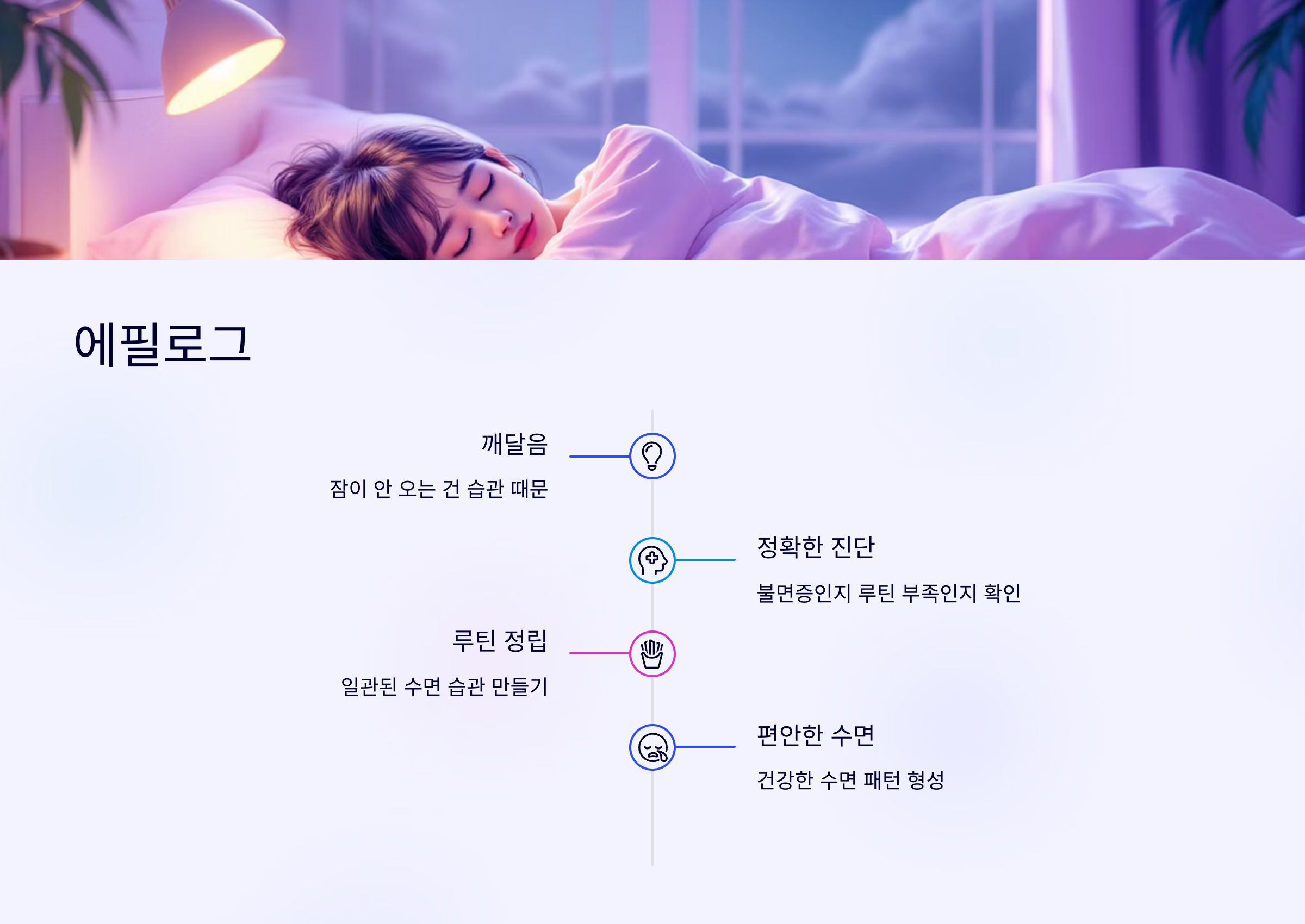저는 수면 루틴을 시작하면서, ‘잠이 안 오는 게 습관 때문이었구나’라는 걸 깨달았어요.