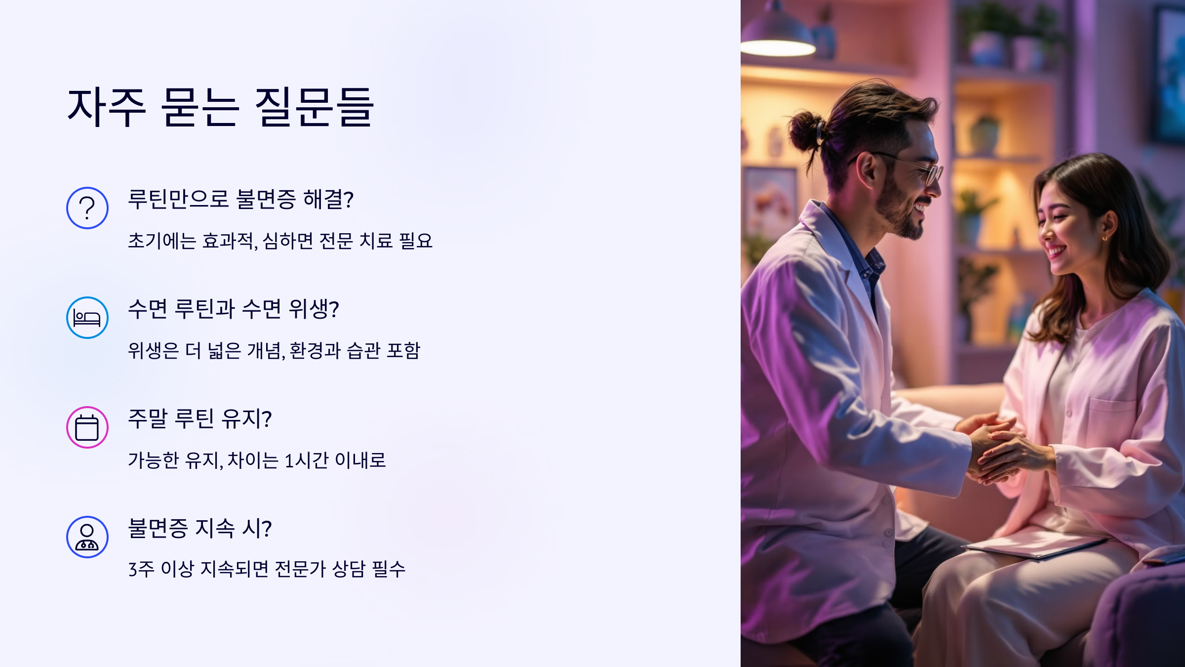 “불면증이 있는 사람일수록, 수면 루틴을 더욱 철저히 유지해야 한다.”