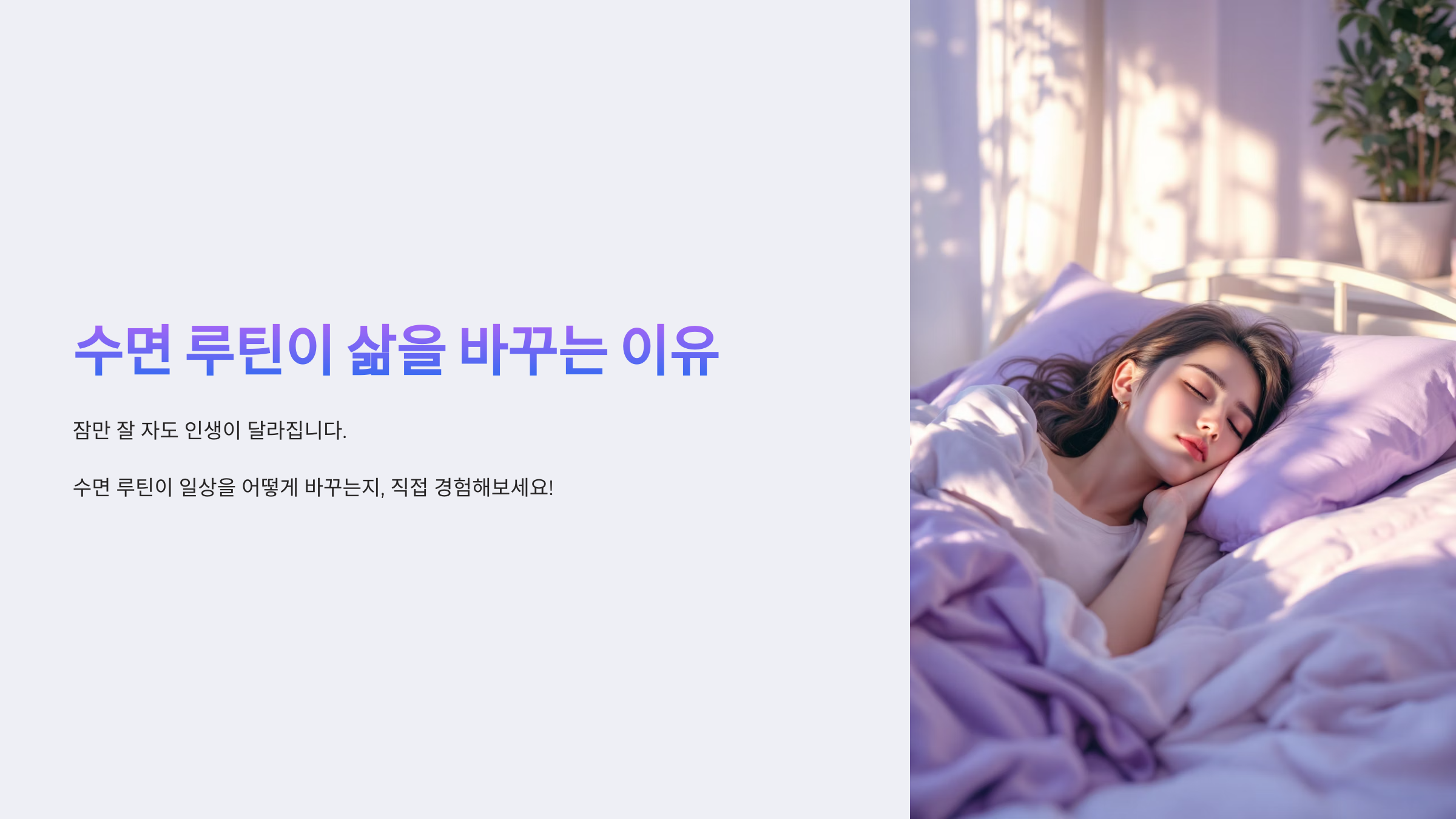 잠만 잘 자도 인생이 달라집니다. 수면 루틴이 일상을 어떻게 바꾸는지, 직접 경험해 보세요!