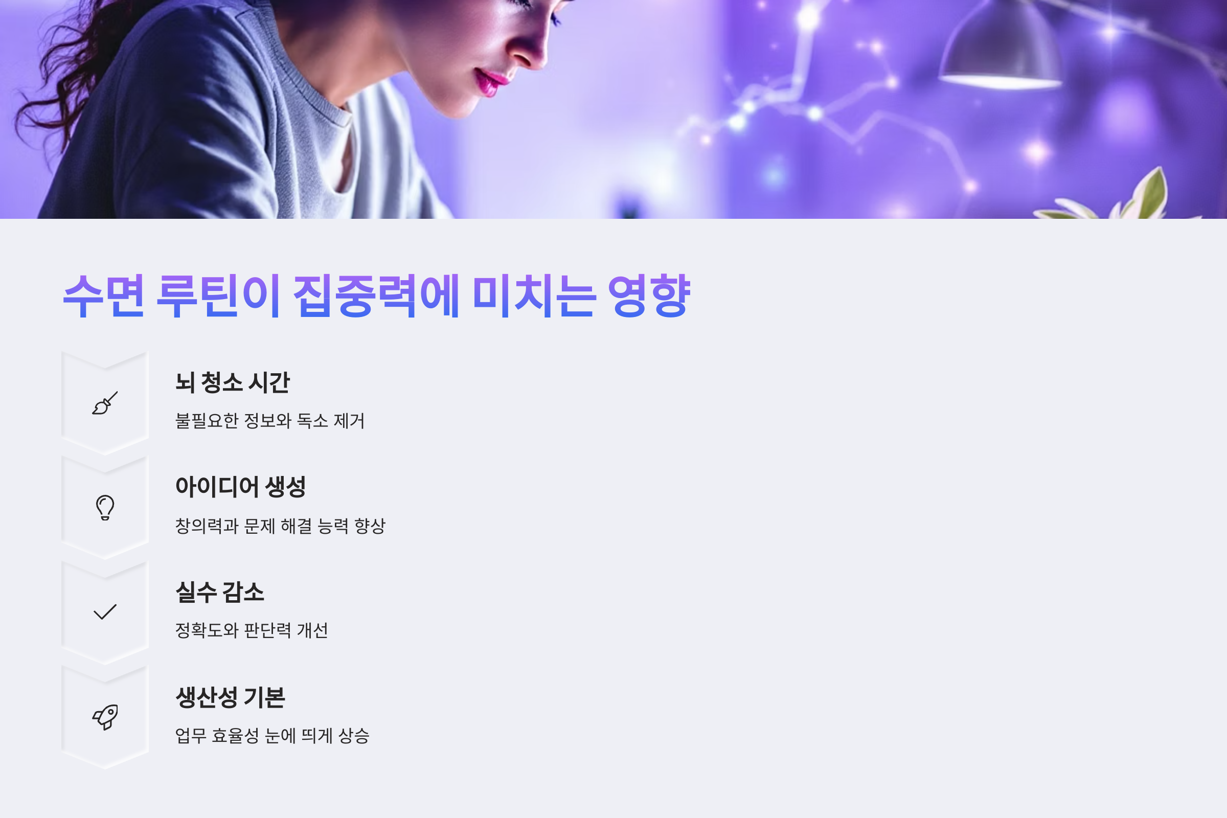 규칙적인 수면 루틴을 갖춘 이후, 저는 업무 집중력이 눈에 띄게 올라갔어요.