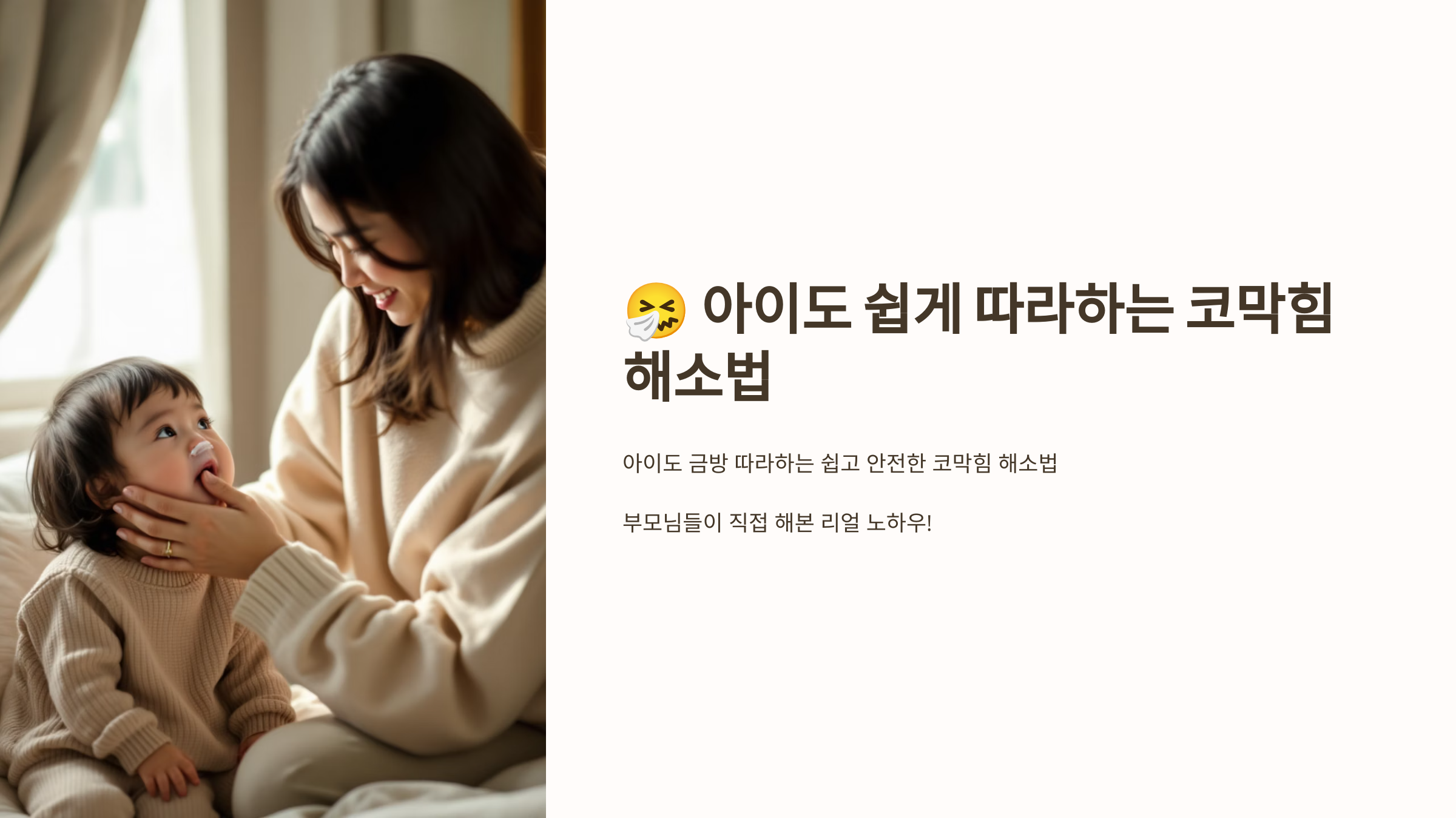 아이도 금방 따라 하는 쉽고 안전한 코막힘 해소법, 부모님들이 직접 해본 리얼 노하우!
