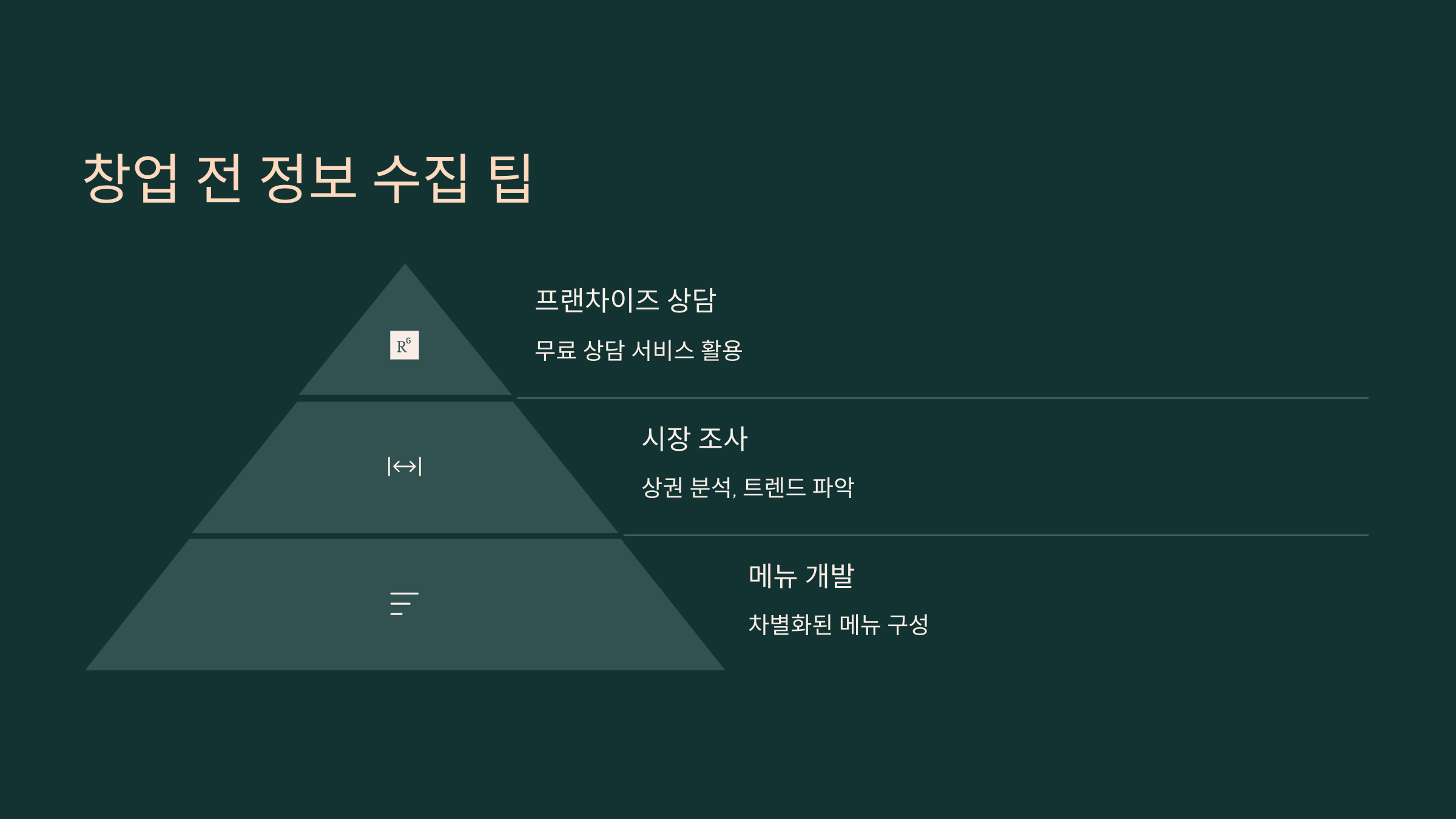 시장 조사, 상권 분석, 메뉴 개발 등 창업에 필요한 정보를 체계적으로 수집하세요.