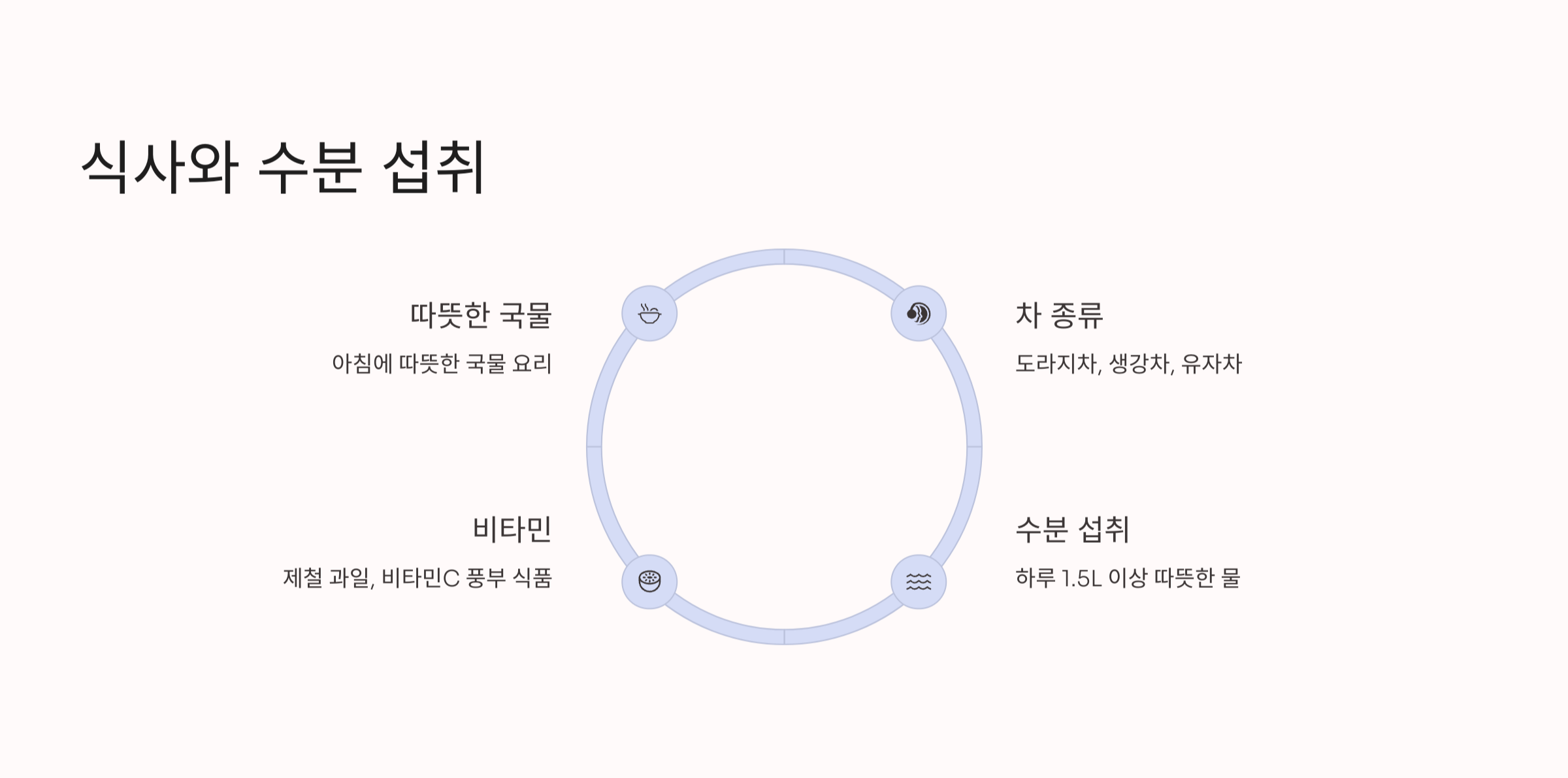 전문가들이 말하길, 비염은 체온 유지 + 수분 공급 + 항염 식품 섭취가 핵심이라고 하더라고요.