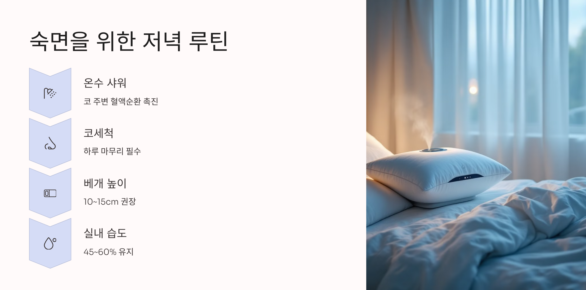 이 3가지만으로도 코 점막을 자극 없이 깨우고, 공기 순환을 도와줄 수 있어요.