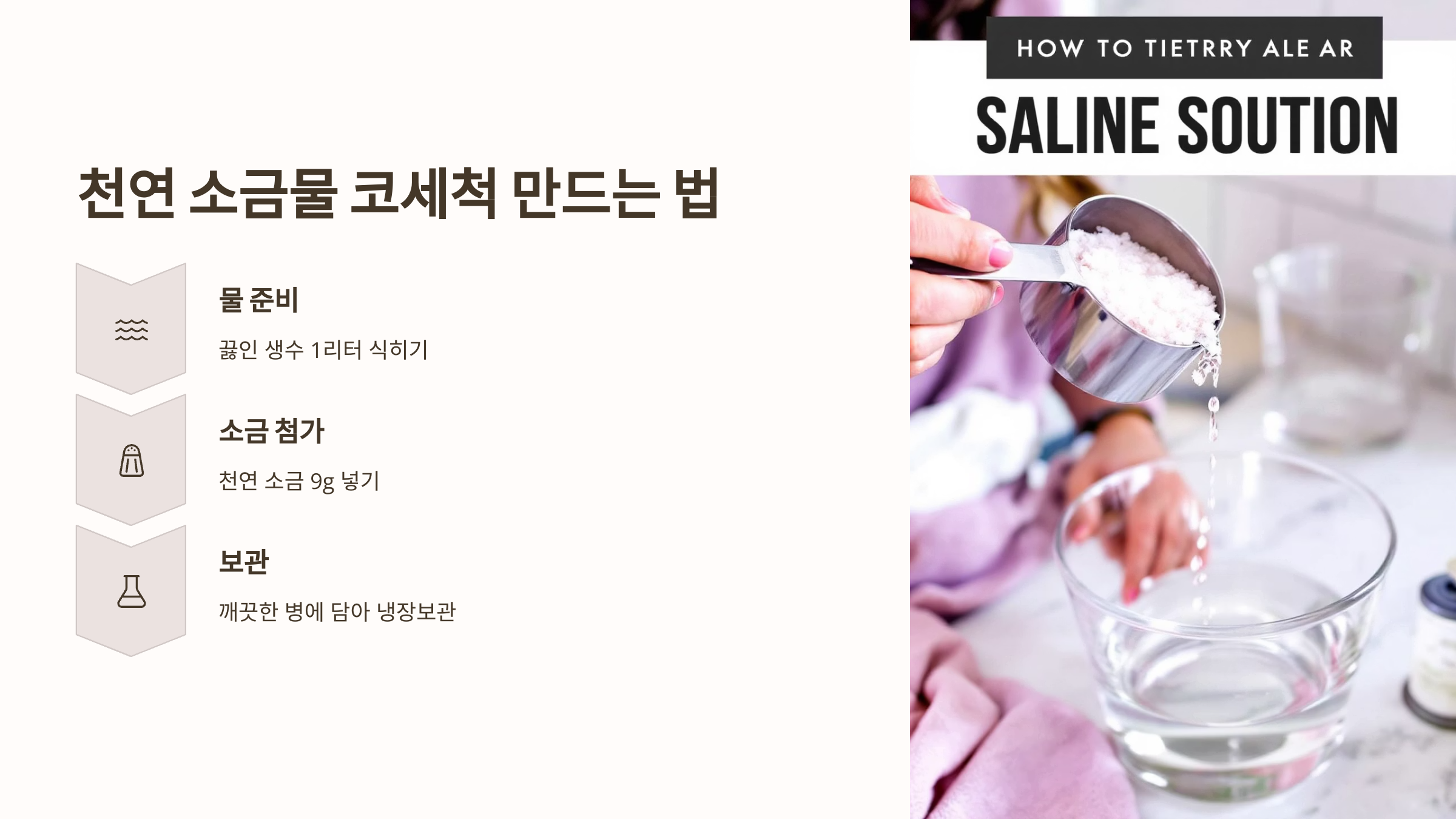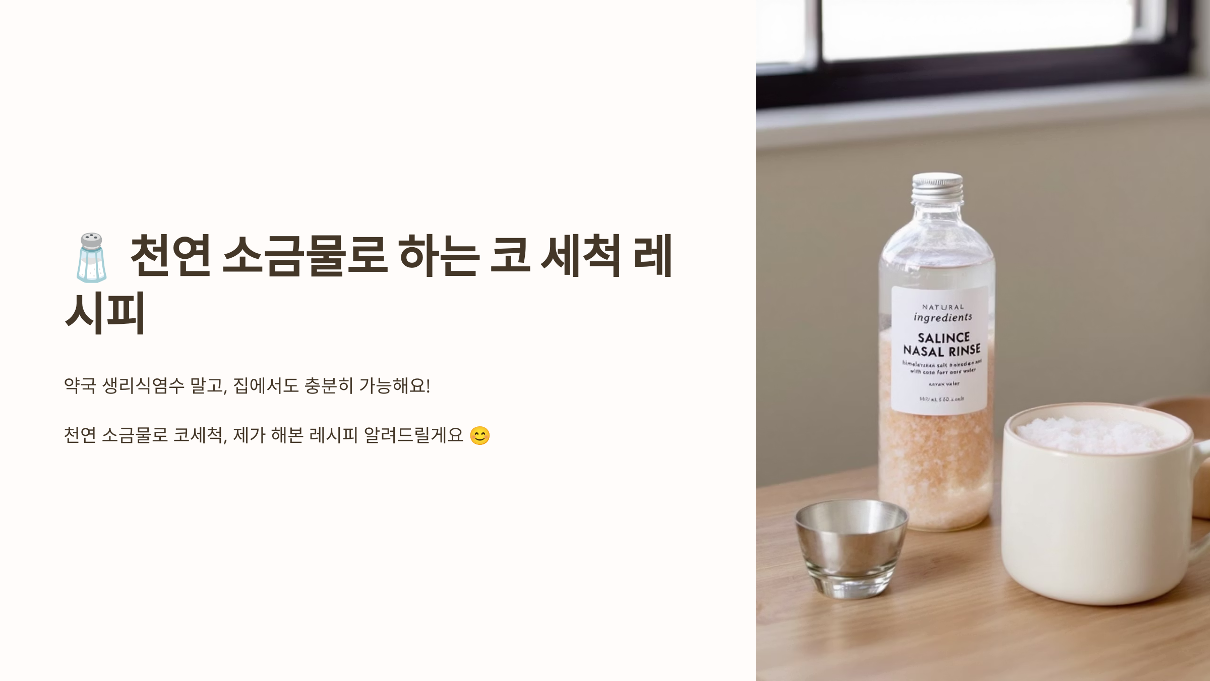 약국 생리식염수 말고, 집에서도 충분히 가능해요! 천연 소금물로 코세척, 제가 해본 레시피 알려드릴게요 😊