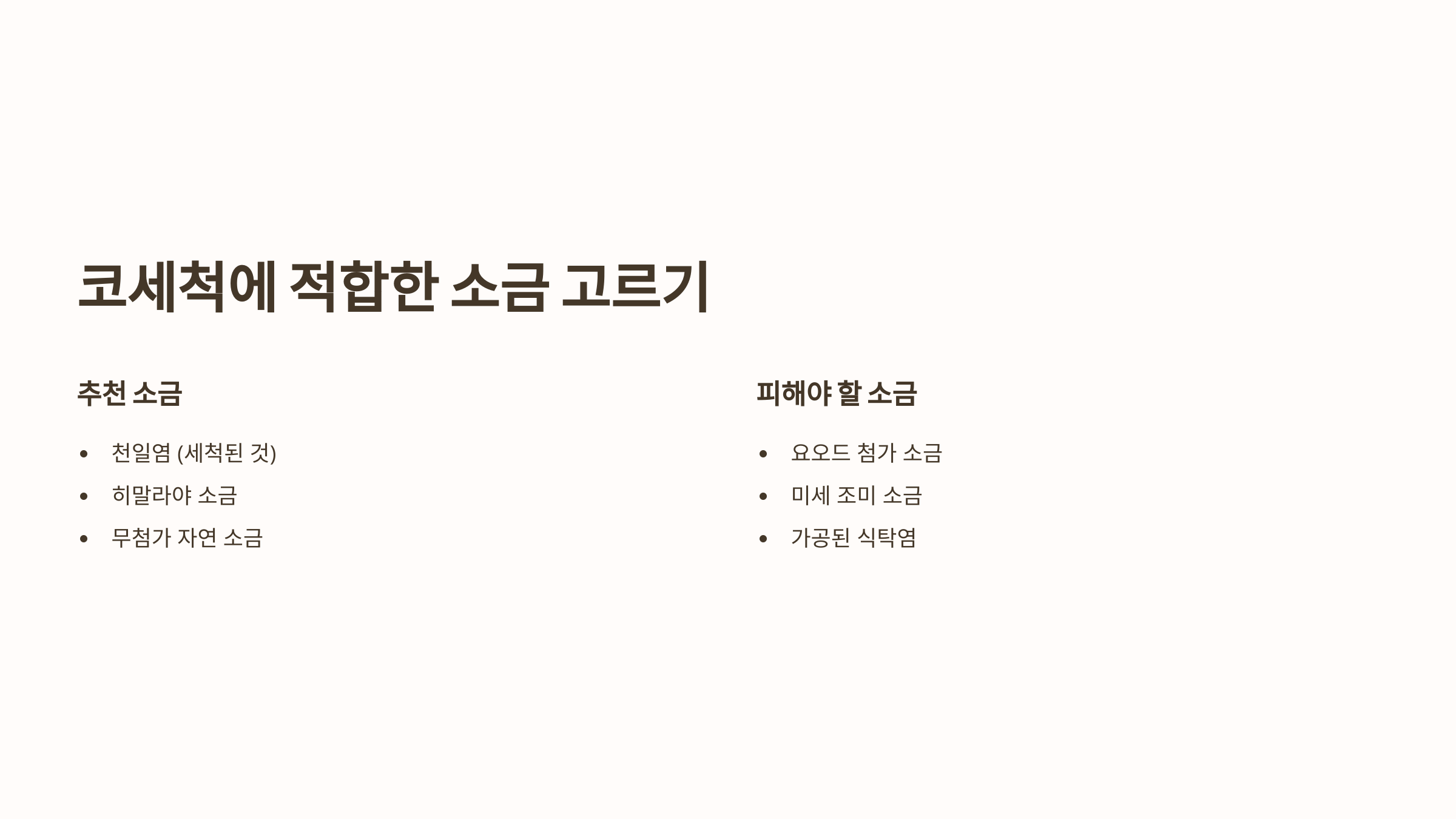 여기서 가장 중요한 건 소금의 종류 선택이에요!