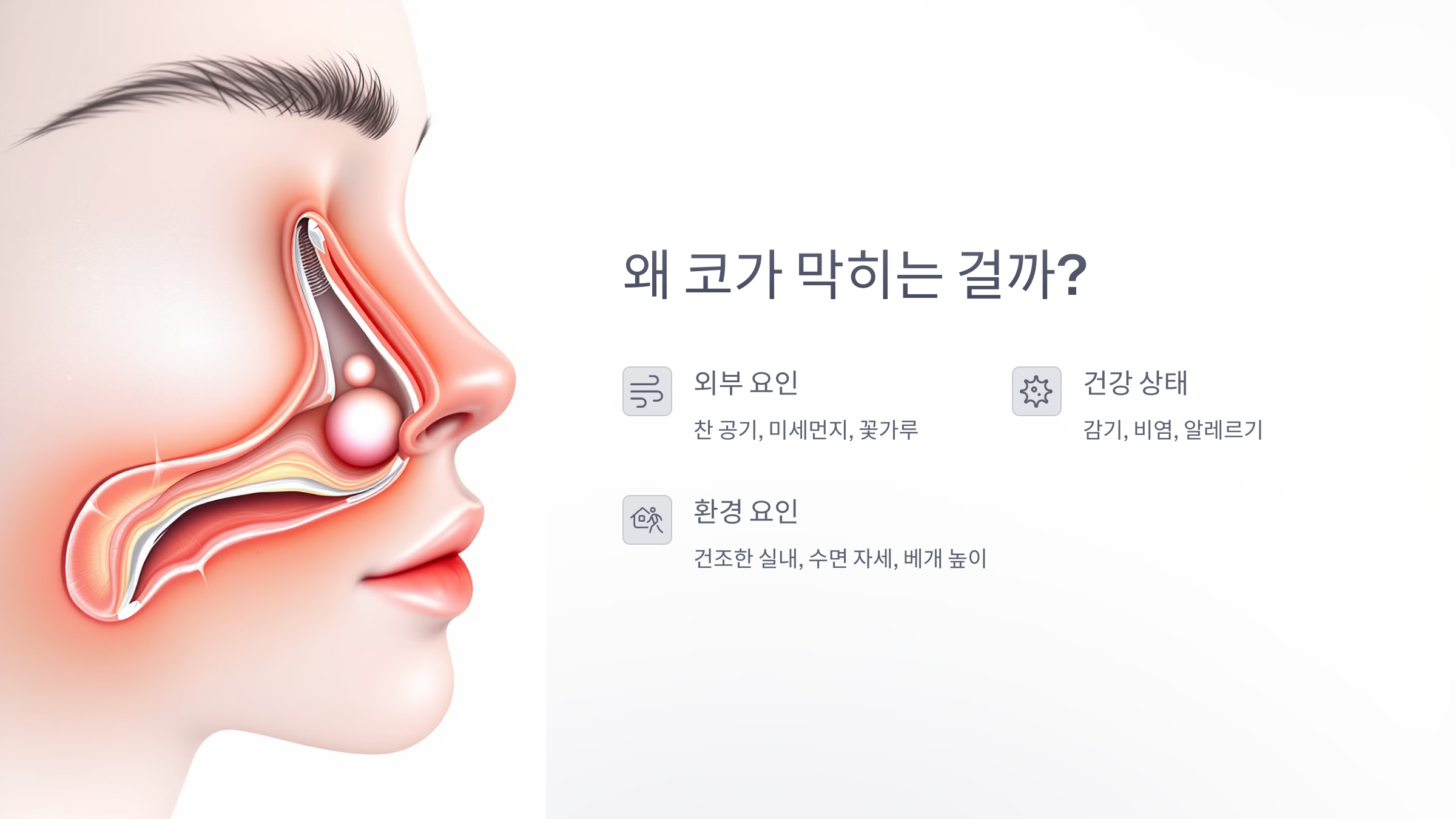 코막힘은 단순히 콧물이 많아서 막히는 게 아니에요.