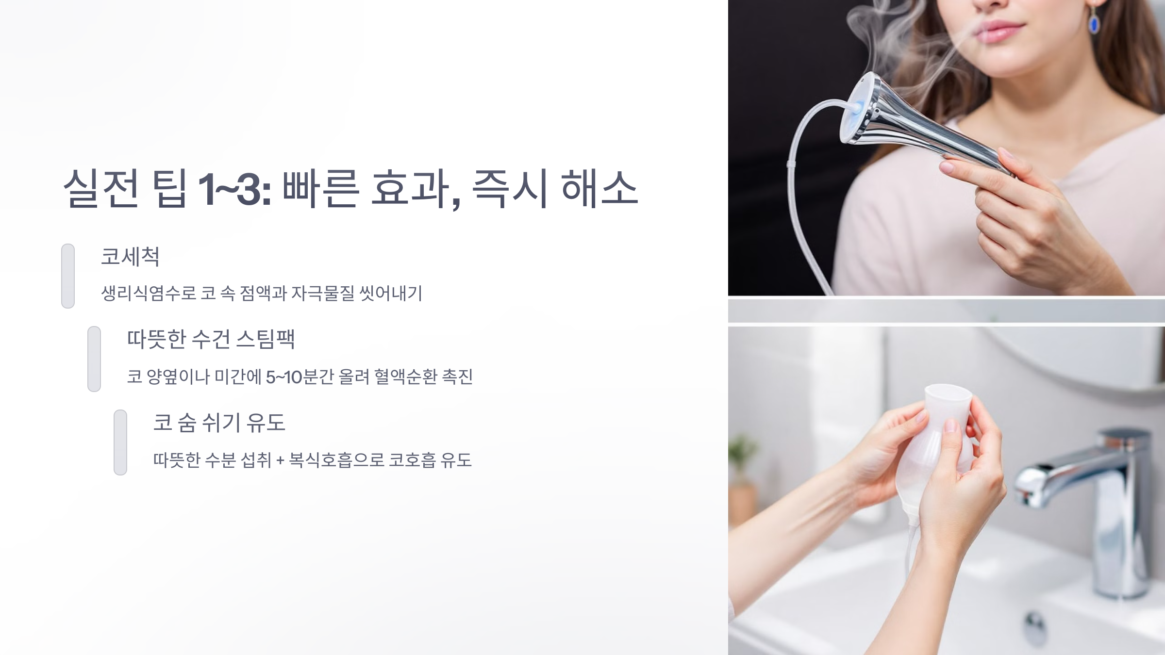 숨 쉬기 힘든 그 순간, 당장 실천할 수 있는 코막힘 해소 팁 10가지! 생활 속에서 바로 적용해 보세요!