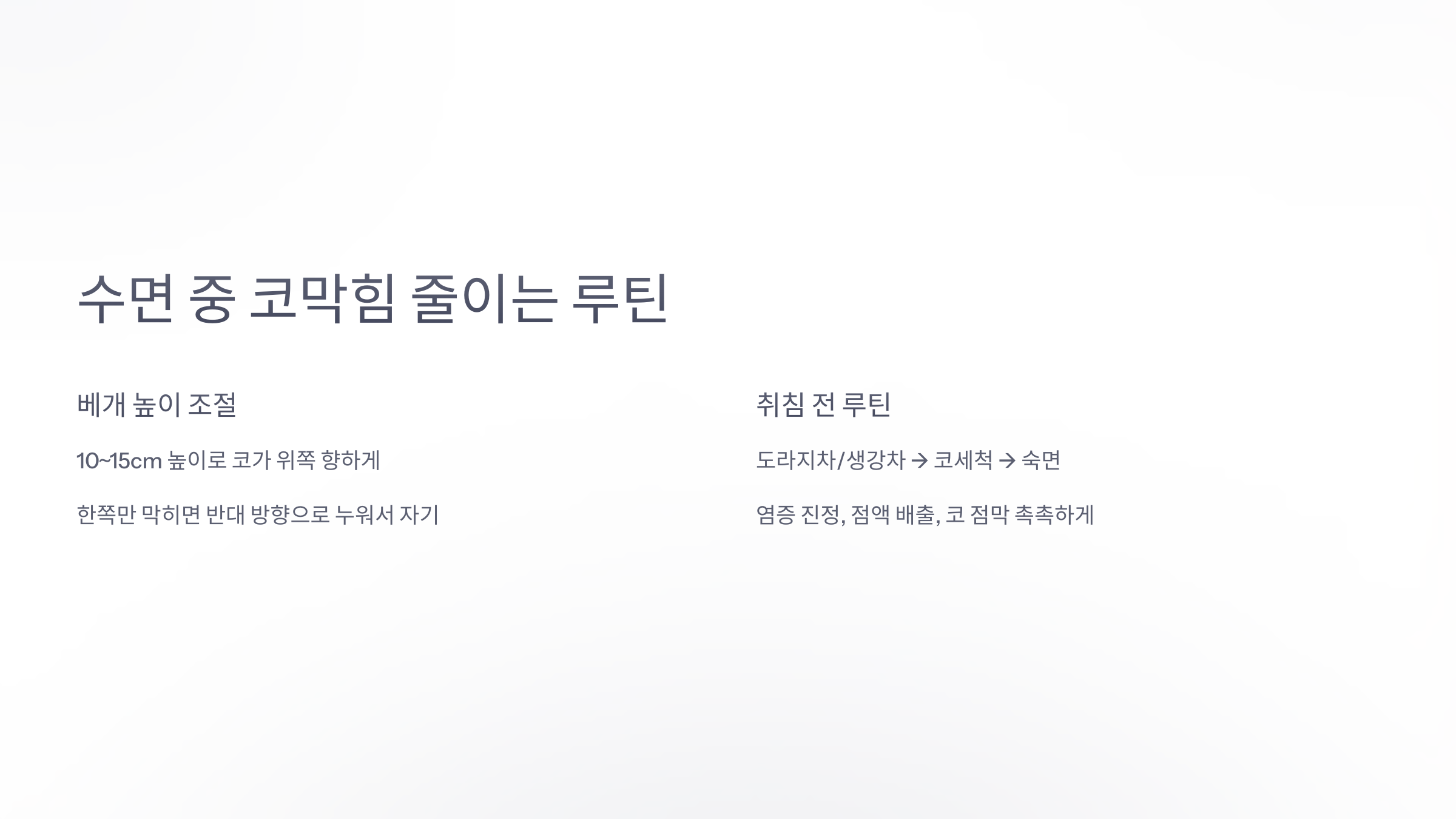 ## 실전 팁 7~8: 수면 중 코막힘 줄이는 루틴