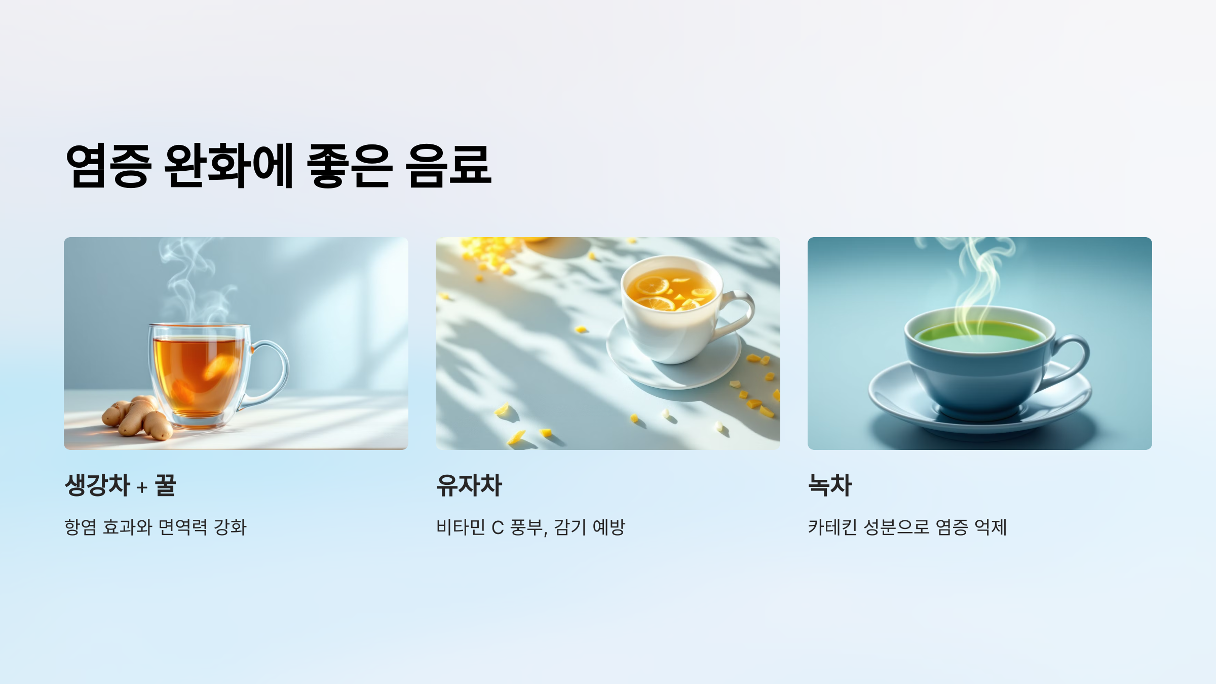 음료도 중요한 역할을 해요. 특히 따뜻하고 항염 효과가 있는 차 종류는 코막힘 해소에 큰 도움이 되더라고요.