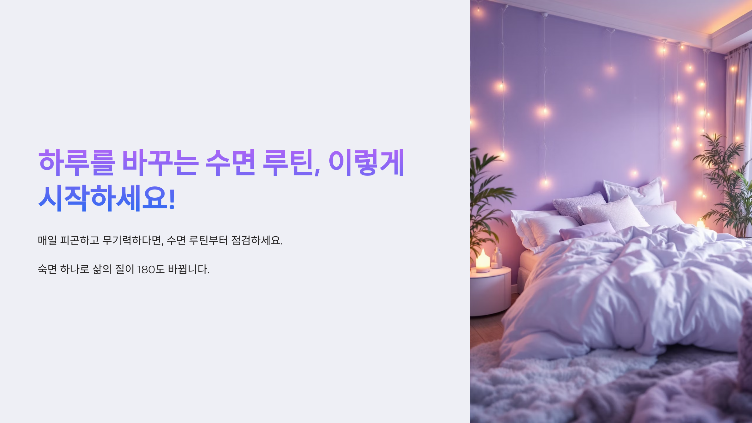 매일 피곤하고 일상이 무기력하다면, 수면 루틴부터 점검해 보세요. 숙면 하나만으로 삶의 질이 180도 바뀝니다.
