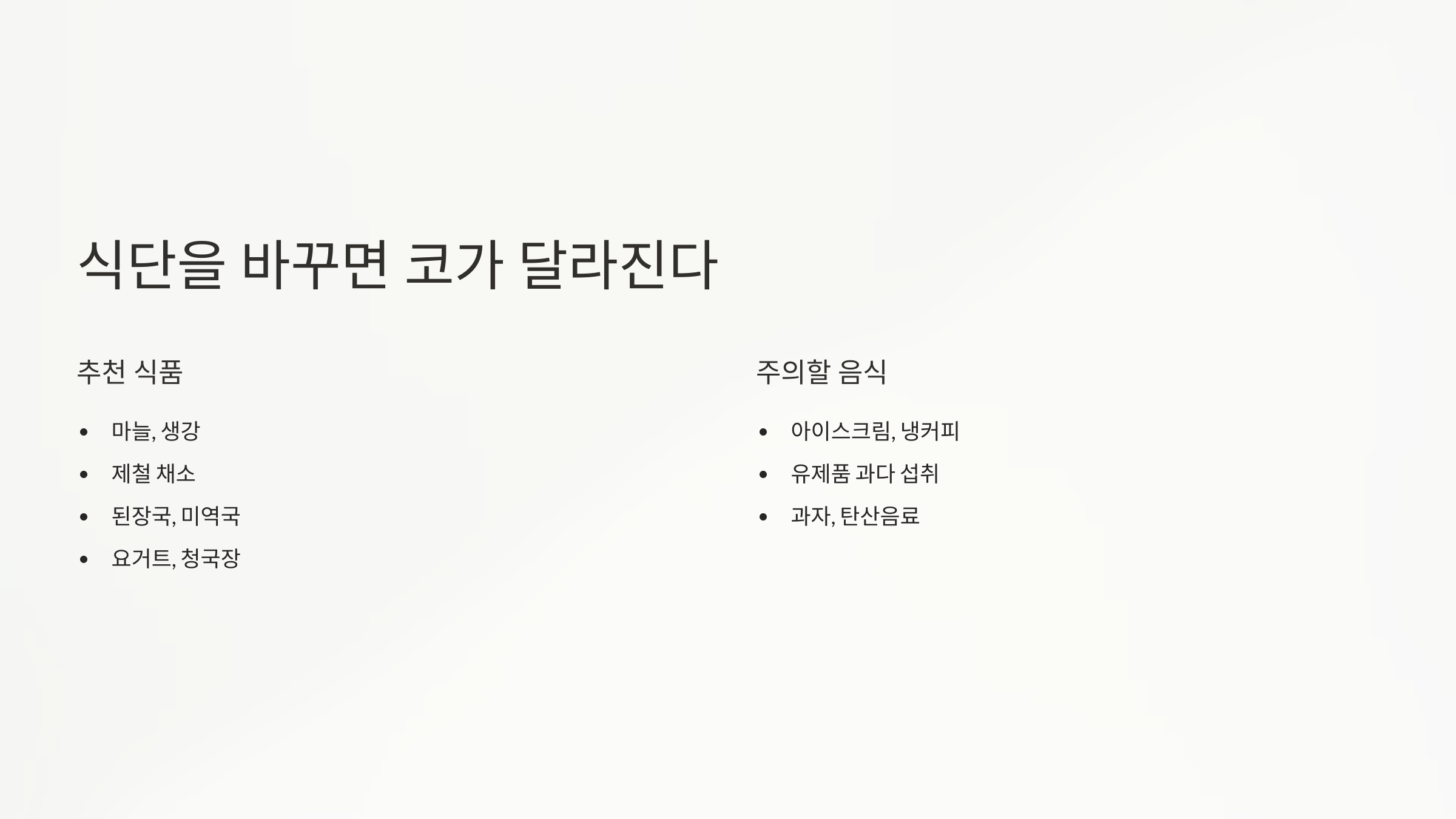 - 식단을 바꾸면 코가 달라진다