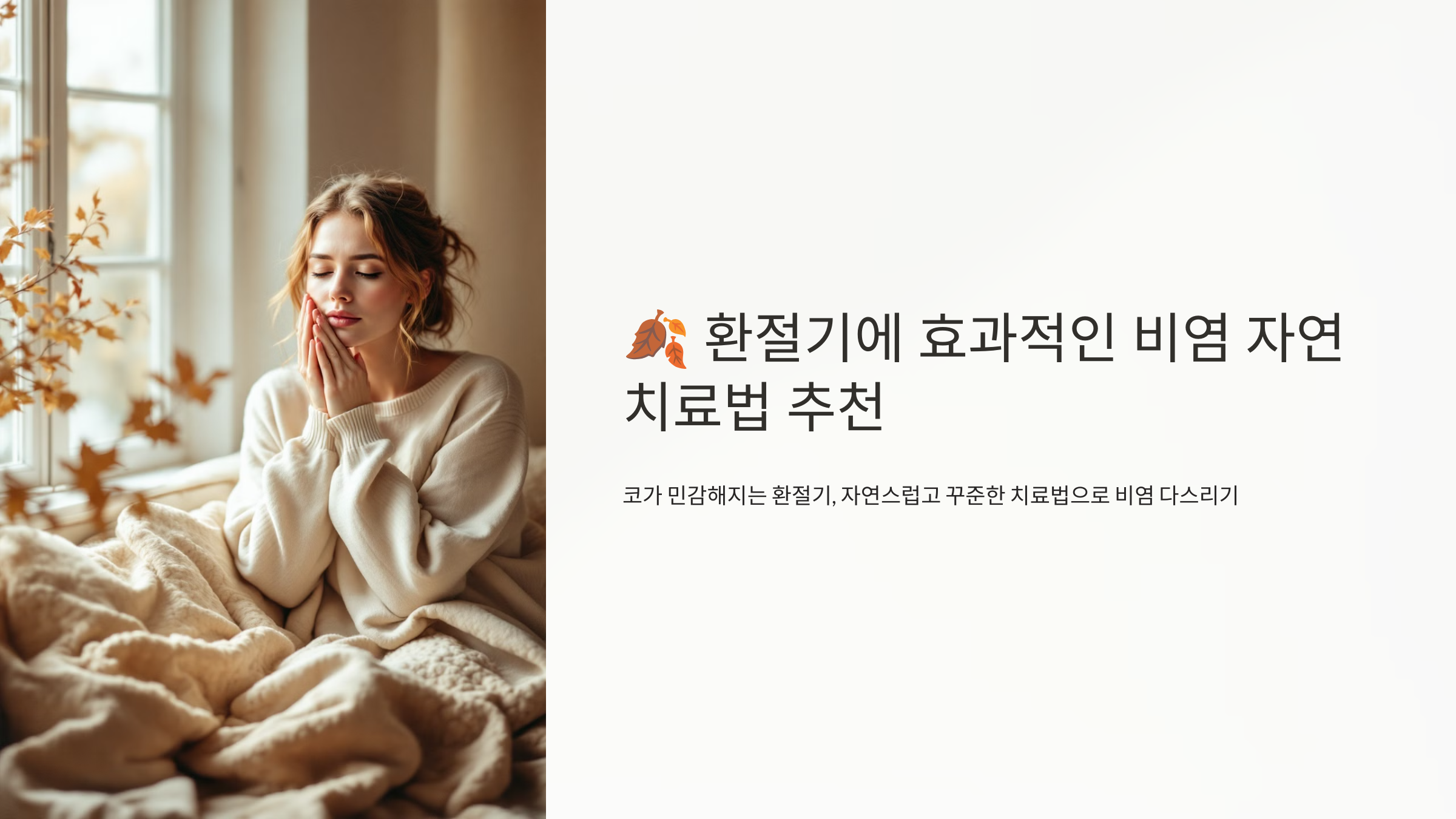 코가 민감해지는 환절기, 매번 고생하셨나요? 이번엔 자연스럽고 꾸준히 실천 가능한 치료법으로 비염을 다스려보세요!