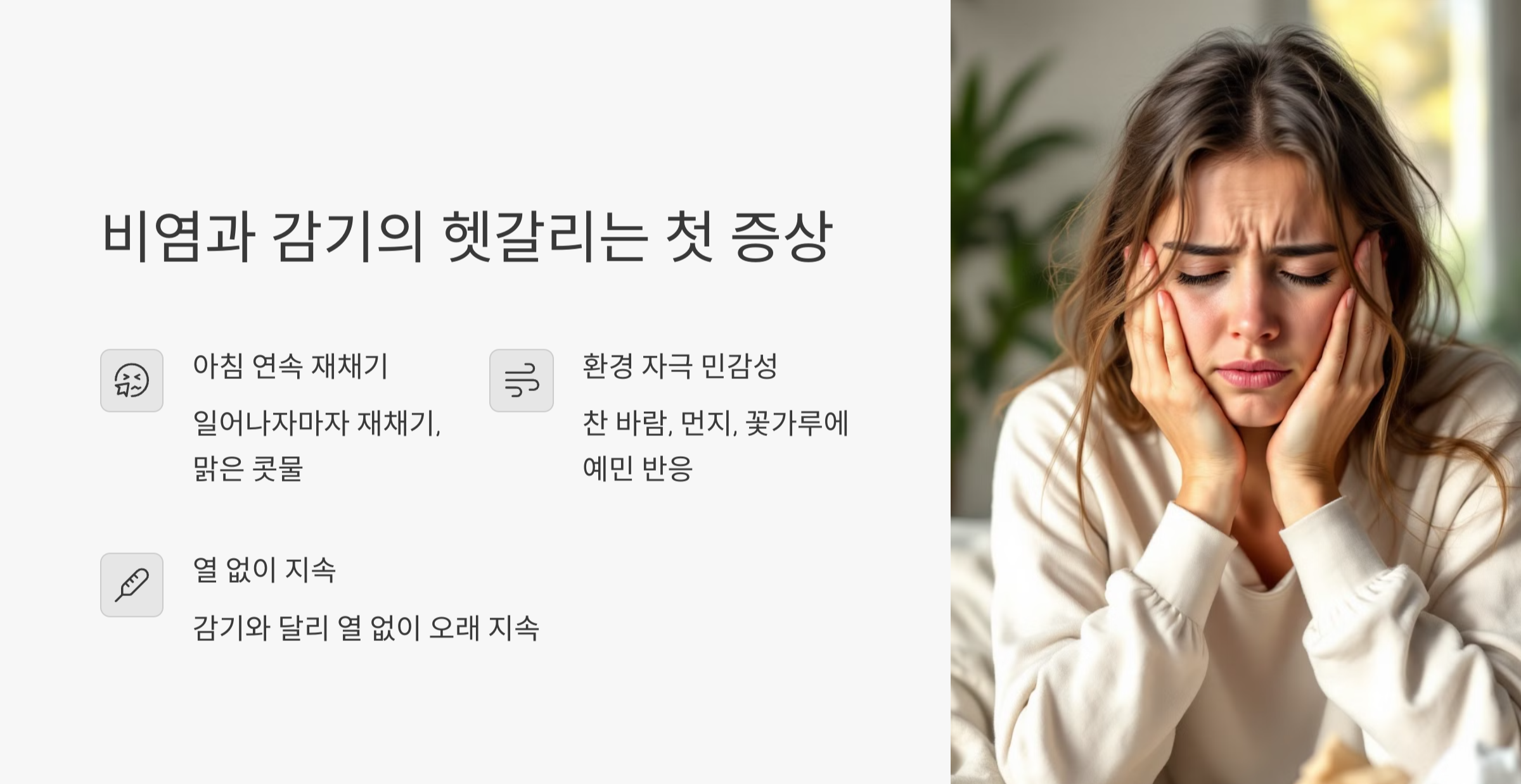 "감기 걸렸나?" 싶지만 열도 없고 목도 안 아프다면 그건 바로 비염 초기 증상일 수 있어요.