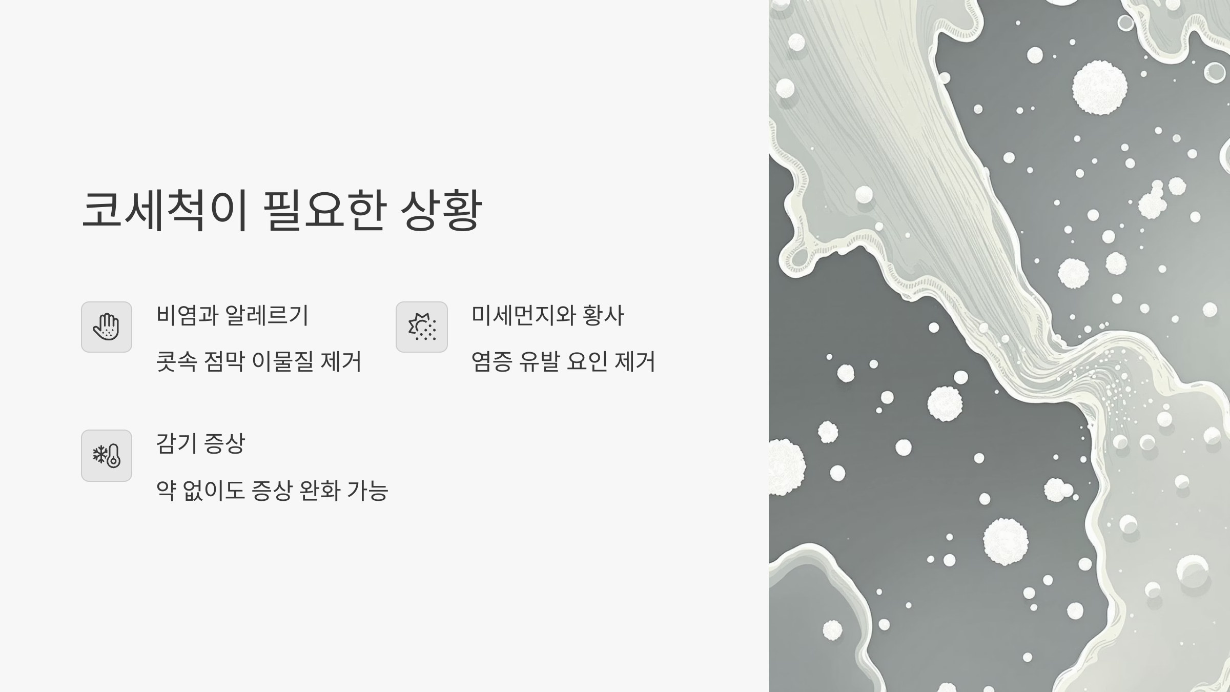코세척은 단순히 청소가 아니라, 숨쉬기 자체를 바꾸는 건강 습관이에요.